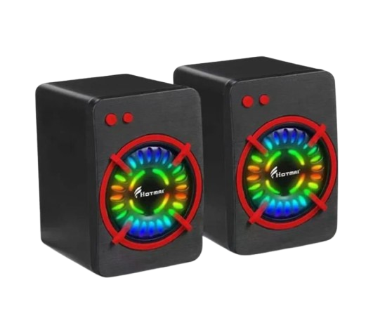 Le duo de haut-parleurs Hotmai LD-11LED allie design compact, performance sonore et éclairage LED multicolore pour sublimer votre bureau ou votre espace gaming. Alimentés directement par USB, ces petits satellites 2.0 offrent une restitution claire des aigus et des médiums, tandis que leurs radiateurs passifs latéraux renforcent les basses. Leur coque en plastique ABS texturé résiste aux chocs et réduit les vibrations indésirables. Branchez-les simplement sur le port USB et l’entrée jack 3,5 mm, et profitez immédiatement de votre musique, vos vidéos ou vos conférences en ligne.